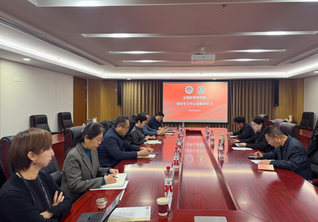 12月8日,证据科学研究院党委在海淀校区开展理论学习中心组集体学习。专题学习党的二十届四中全会精神,结合研究院实际,研讨贯彻落实全会精神的工作思路与具体举措。刘艳红副校长参会并与大家座谈交流。院理论学习中心组成员院长彭文华,副院长张中、赵东,院党委副书记杨俊丽,院党委委员王旭、褚福民、王元凤参加会议。会议由院党委书记尚武主持。